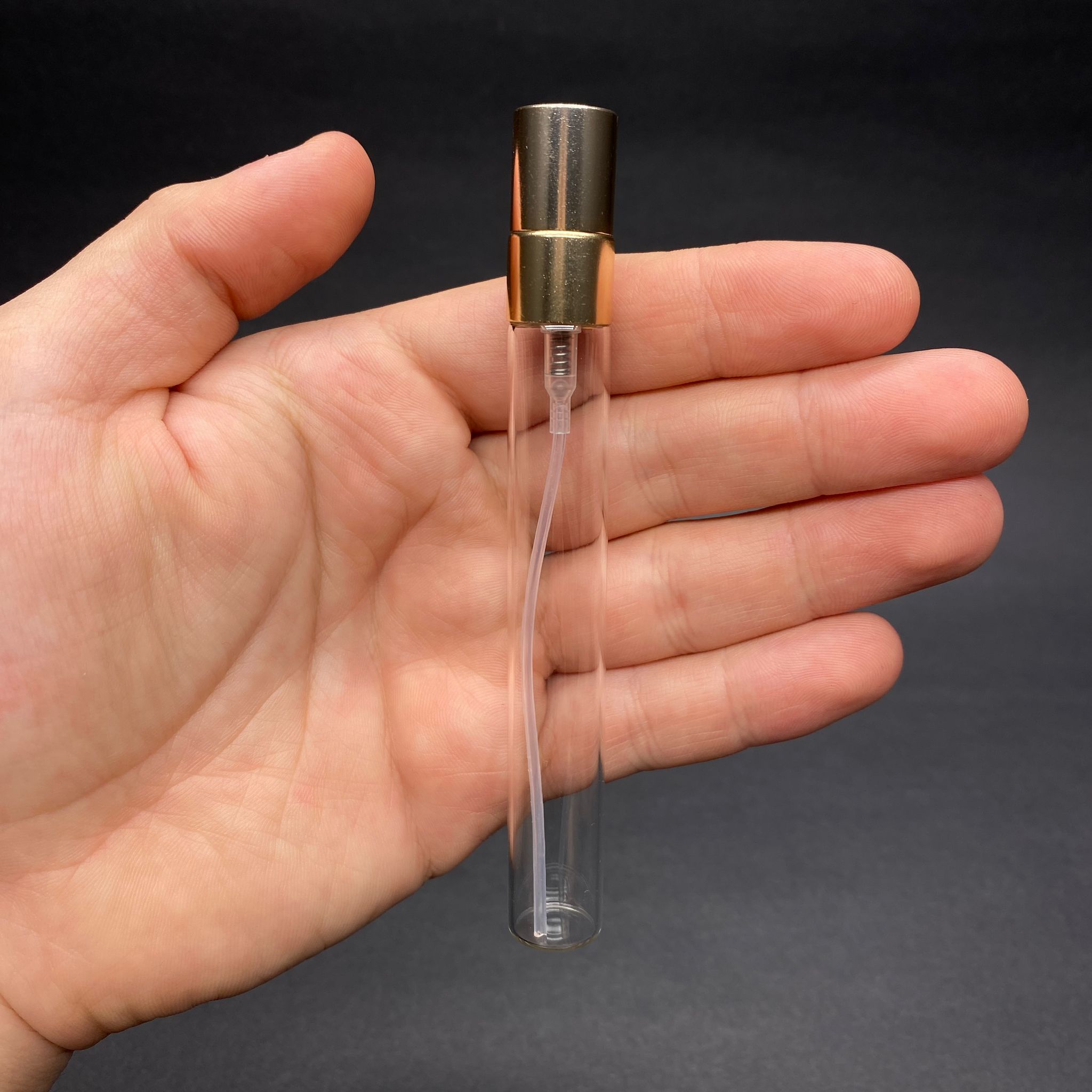 10 Cc Cam Kalem Parfüm Şişesi Gold Metal Spreyli Kapaklı Takım, şıklığı ve kullanışlılığı bir arada sunar. Bu 10 ml cam tüp parfüm şişesi, vidalı sprey valfı sayesinde kolayca tekrar doldurulabilir. Altın metal spreyli kapak detayıyla göz alıcı bir görünüme sahiptir.