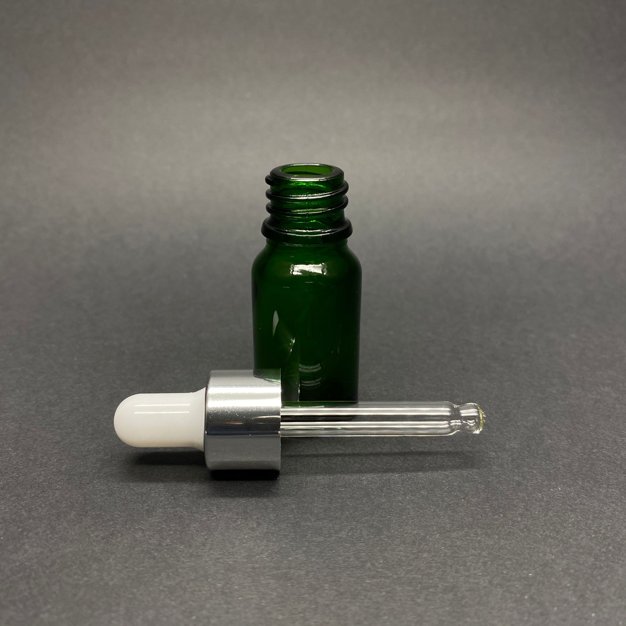 10 Cc Yeşil Cam Damlalıklı Şişe, beyaz emzik ve gümüş metalik kapak ile şık ve kullanışlı bir tasarıma sahiptir. 10 ml'lik yeşil cam damlalıklı şişe, içerisindeki sıvıyı korurken aynı zamanda kolay kullanım sağlar.