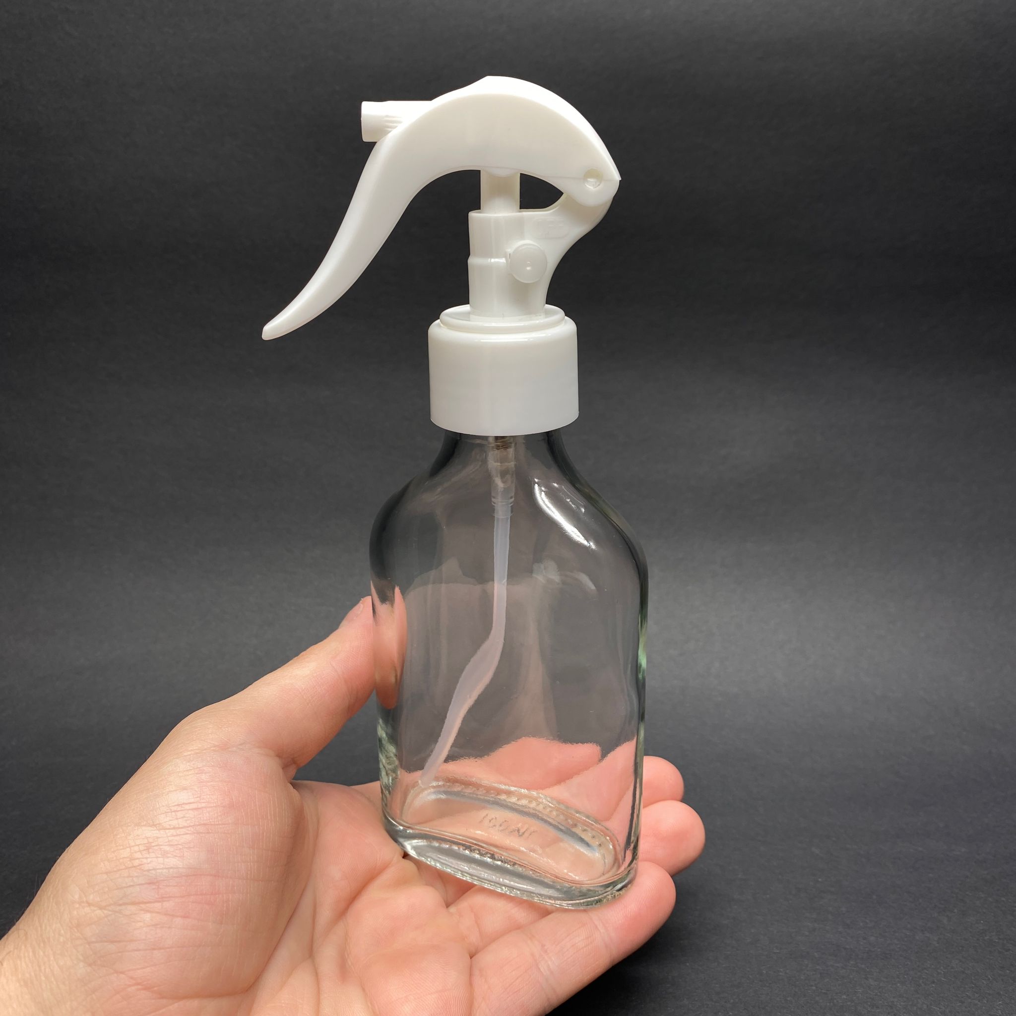 Bu beyaz triger spreyli 100 cc yassı cam şişe, evinizde temizlik ve hoş bir koku sağlamak için mükemmel bir seçenektir. Hem temizlik hem de oda parfümü için kullanılabilen bu ürün, camsil ve benzeri uygulamalar için de idealdir.