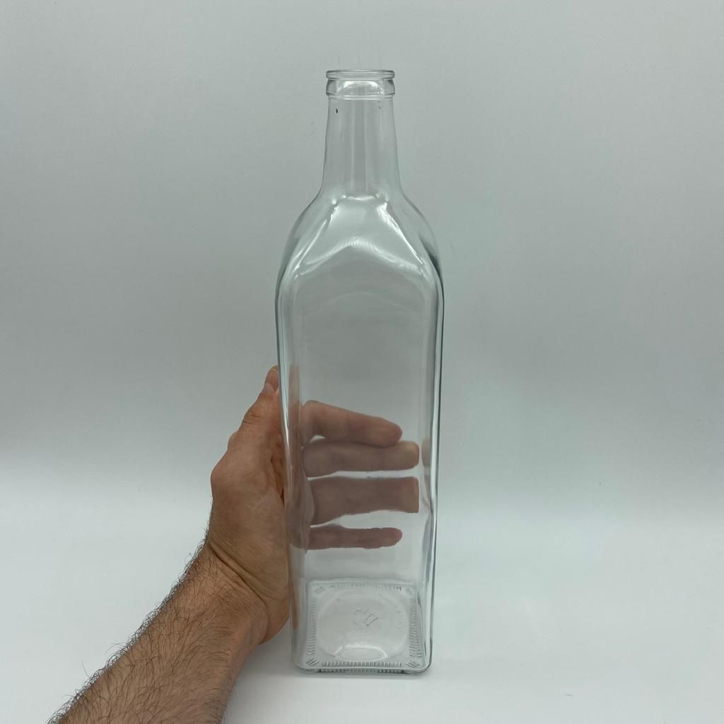1000 Cc Şeffaf Cam Köşeli Maraska Şişe Kapaksız (Çakma 28 Ağız) - 1 Litre Köşeli Cam Şişe - 1000 Ml Maraska Şişe