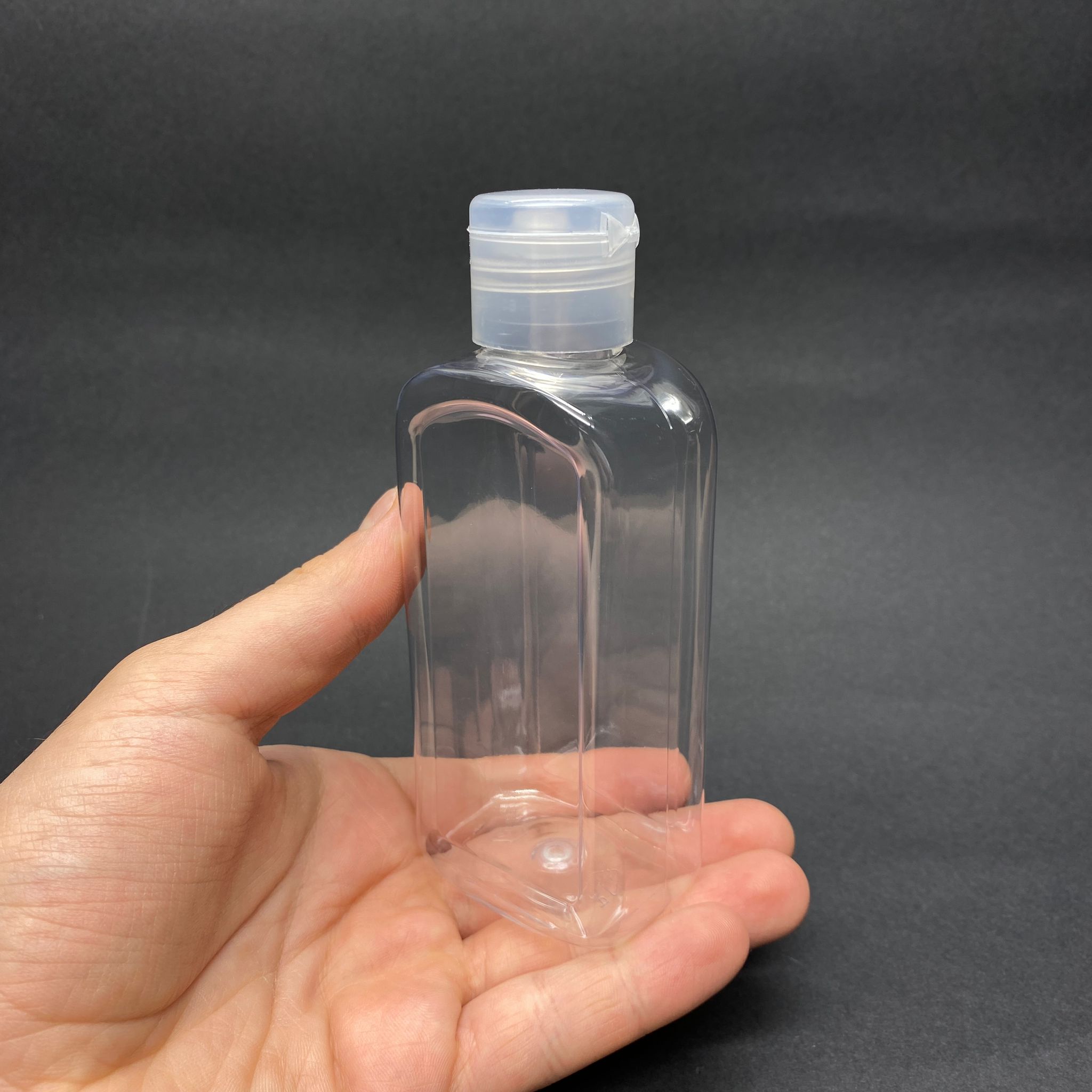 140 Cc Yassı Köşeli Sert Plastik Şişe - Şeffaf Fliptop Akıtıcılı Kapaklı - Çıtçıt Kapaklı - 140 Ml Plastik Yassı Şişe