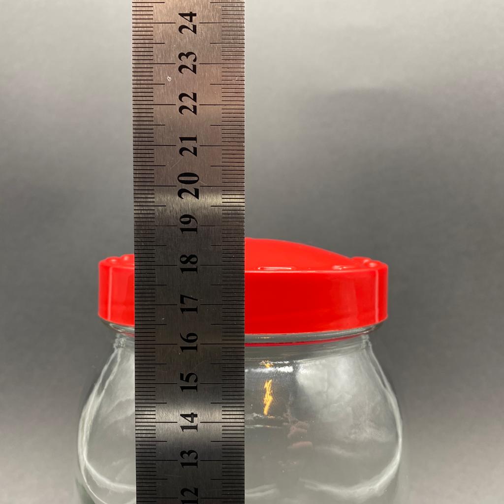 1500 Cc Cam Kavanoz - Kırmızı Plastik Kapaklı - 1,5 Litre Cam Kavanoz