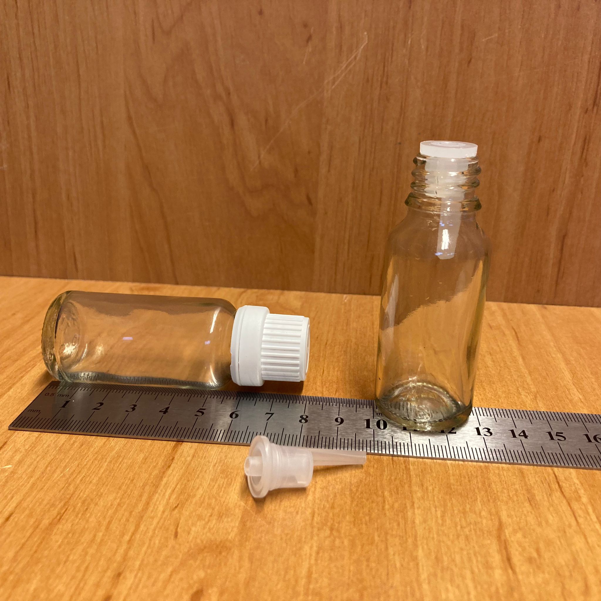 20 Cc Şeffaf İçten Damlalıklı - Beyaz Kilit Kapaklı Cam Şişe - 20 Ml Saydam Standart İçten Damlalıklı Cam Şişe