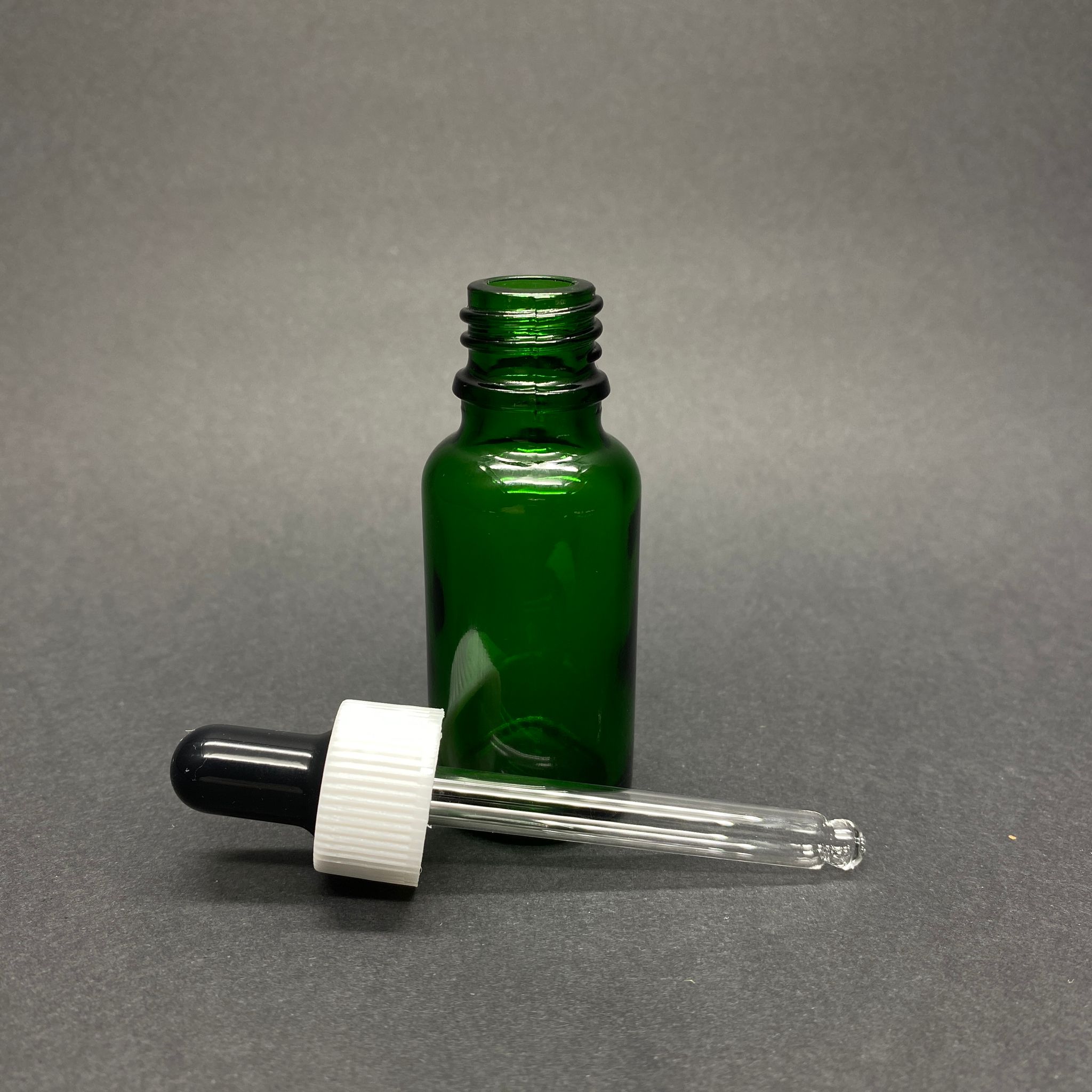 20 Cc Yeşil Cam Damlalıklı Şişe - Siyah Emzik - Beyaz Plastik Kapak - 20 Ml Yeşil Cam Damlalıklı Şişe