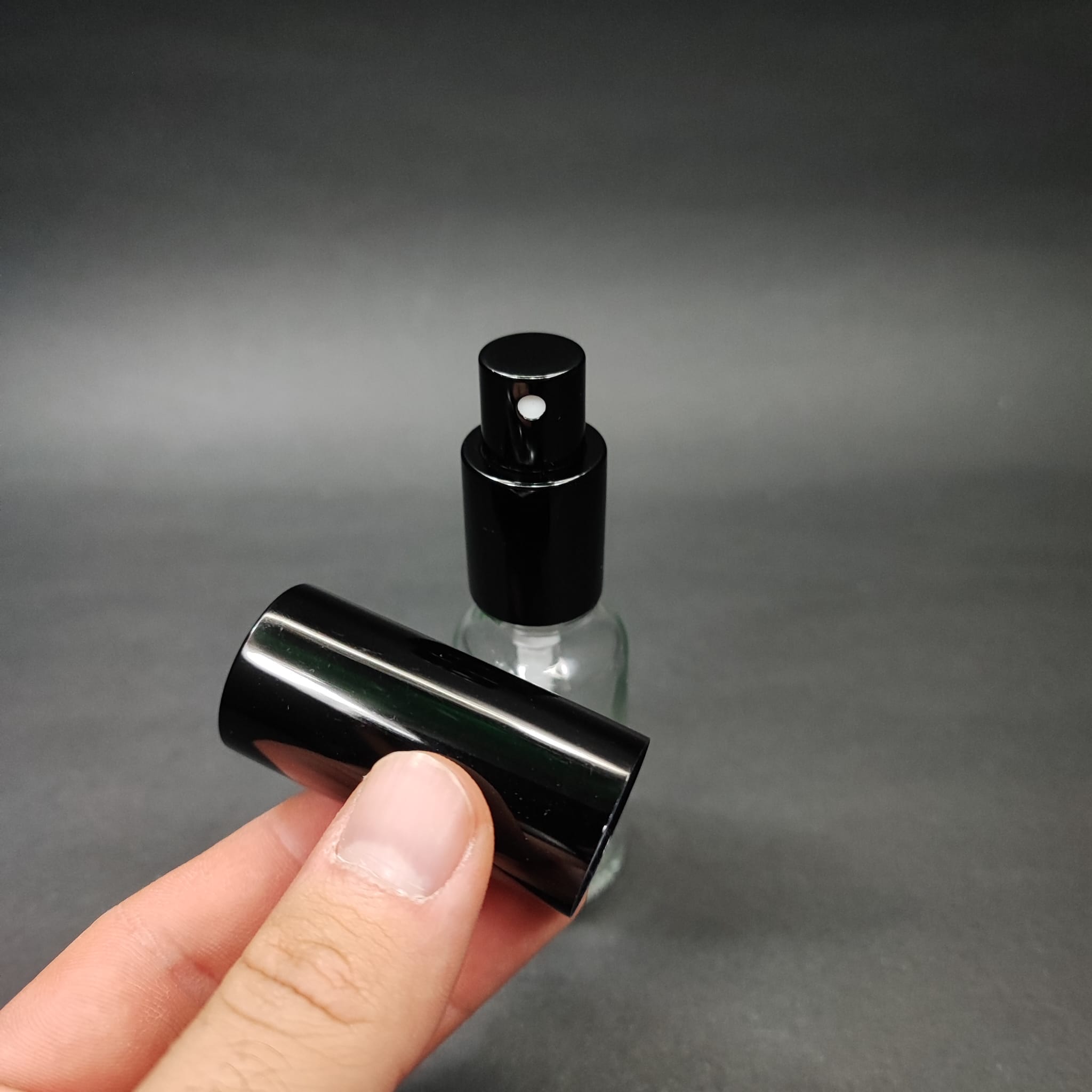 20 ml Lüks Vidalı Valf Çevirme Parfüm Şişeleri seti, şıklığı ve işlevselliği bir arada sunuyor. Bu set, 20 cc şeffaf cam şiye ve siyah metal spreyli kapaktan oluşmaktadır.