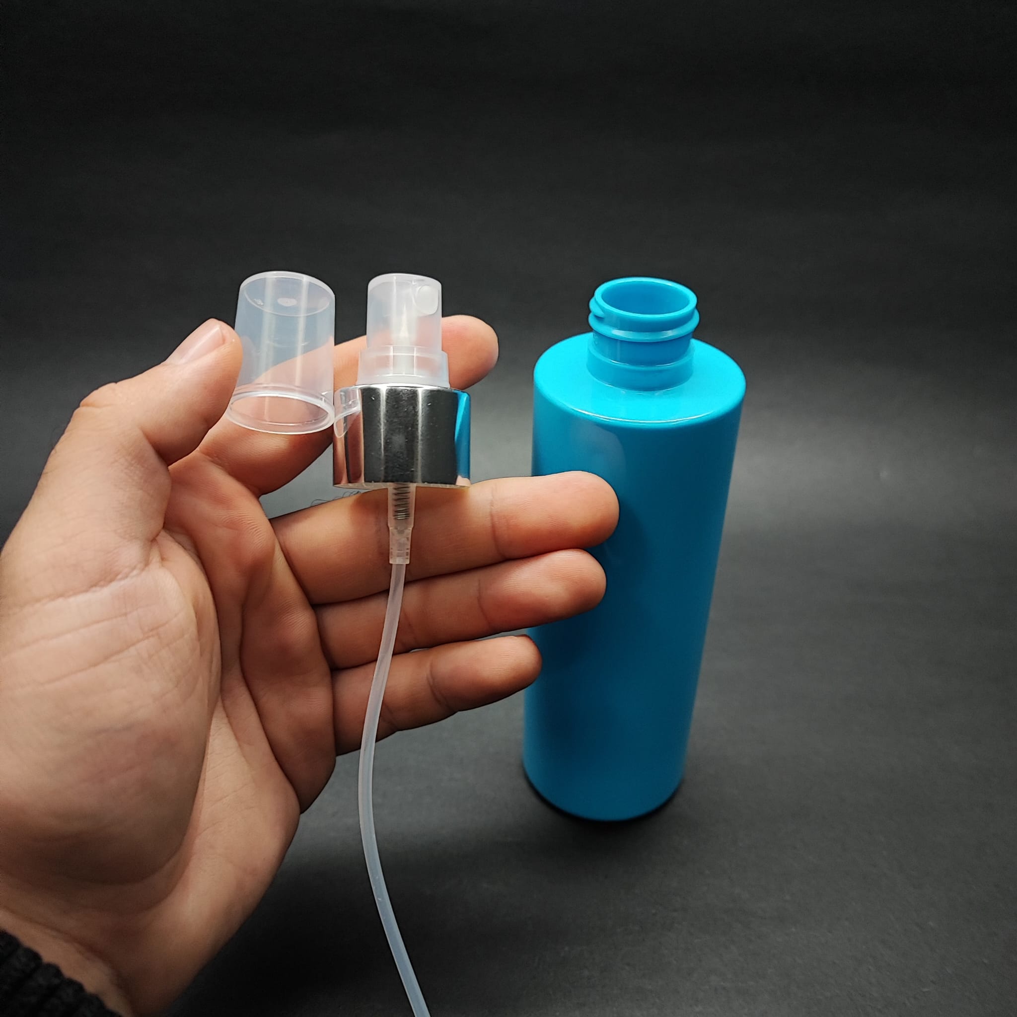 200 Cc Küt Boyunlu Uzun Silindir Pet Şişe (24 Gr) - Gümüş Spreyli - 200 Ml Plastik Şişe - Mavi