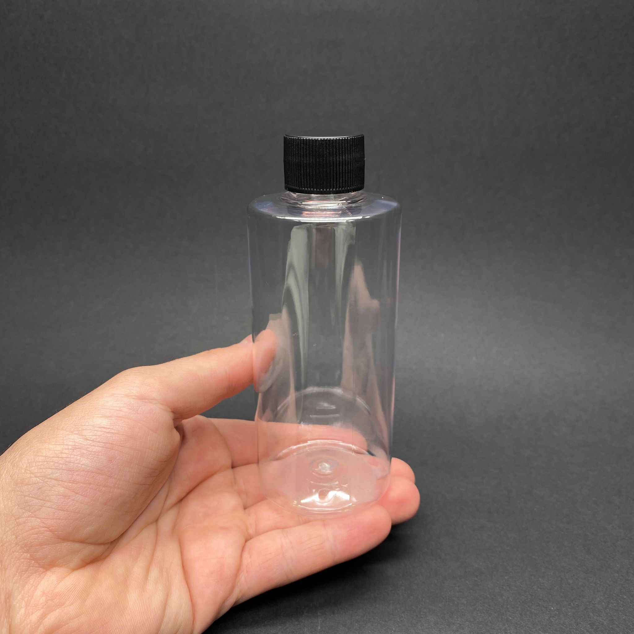 200 Cc Silindir Keskin Küt Model Sert (27 Gr) Pet Şişe - Siyah Kapaklı - Ağız Çapı 24 Mm - Şeffaf