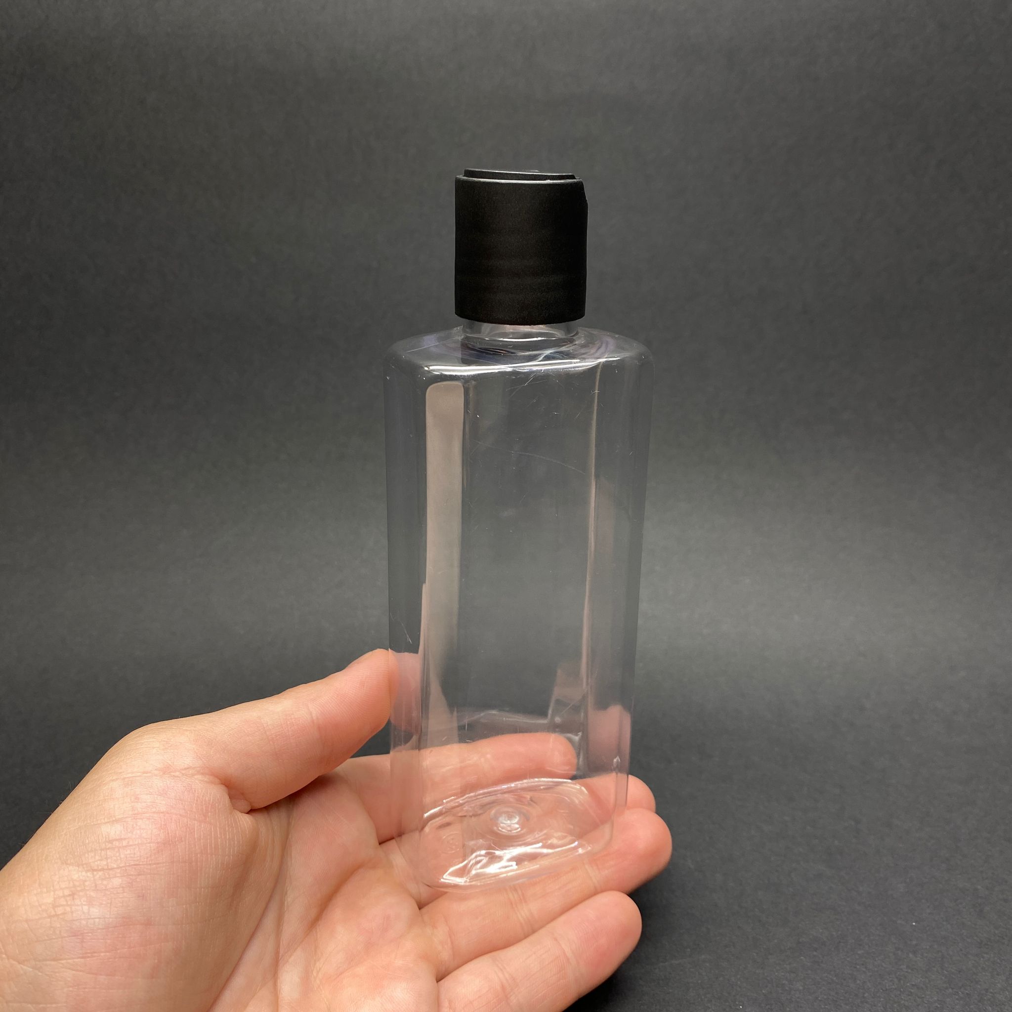 200 Cc Yassı Model Pet Şişe - Siyah Disktop Şampuan Kapaklı - Ağız Çapı 24 Mm - Şeffaf
