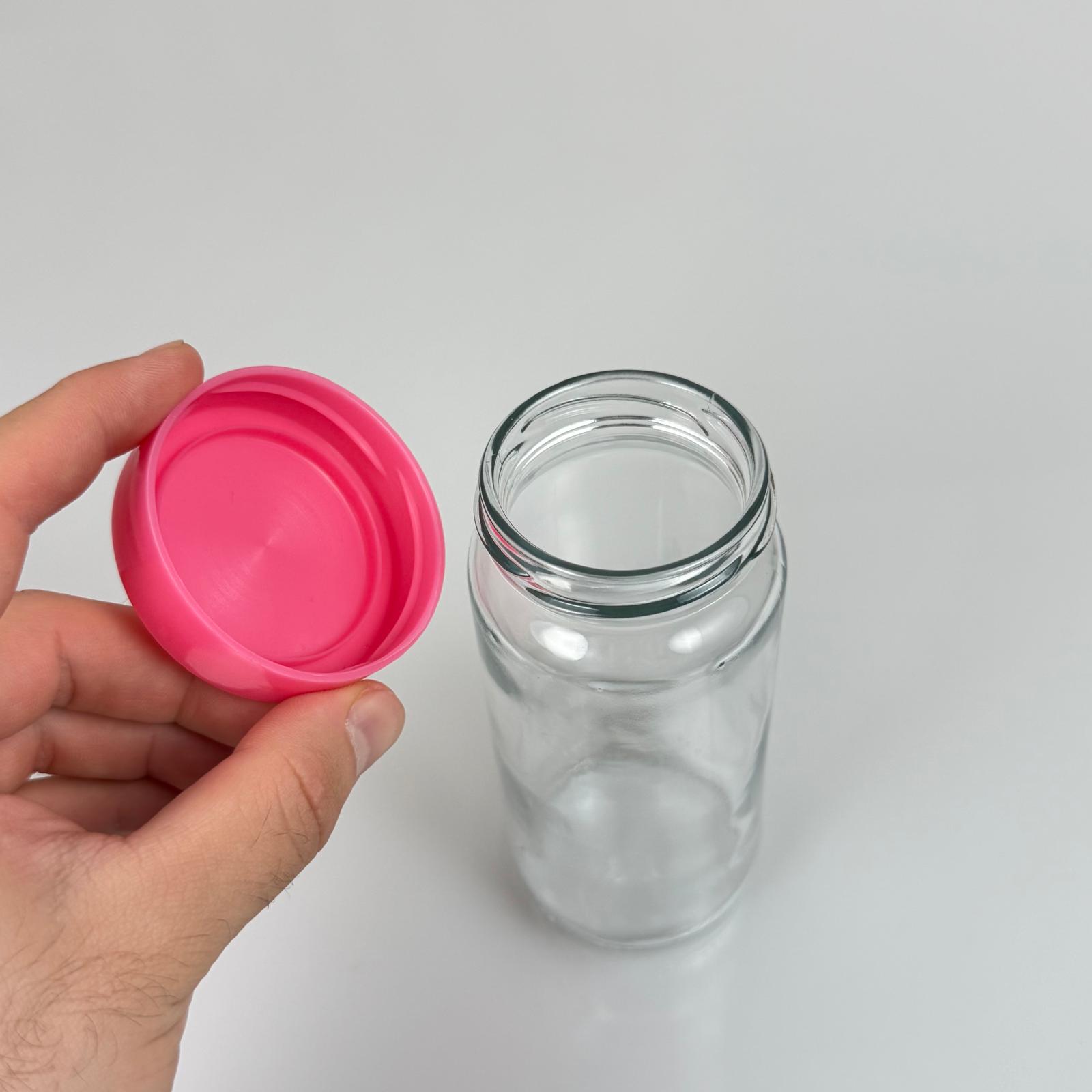 244 Cc Cam Kavanoz + Pembe Plastik Kapak - 244 Ml Plastik Kapaklı Cam Kavanoz