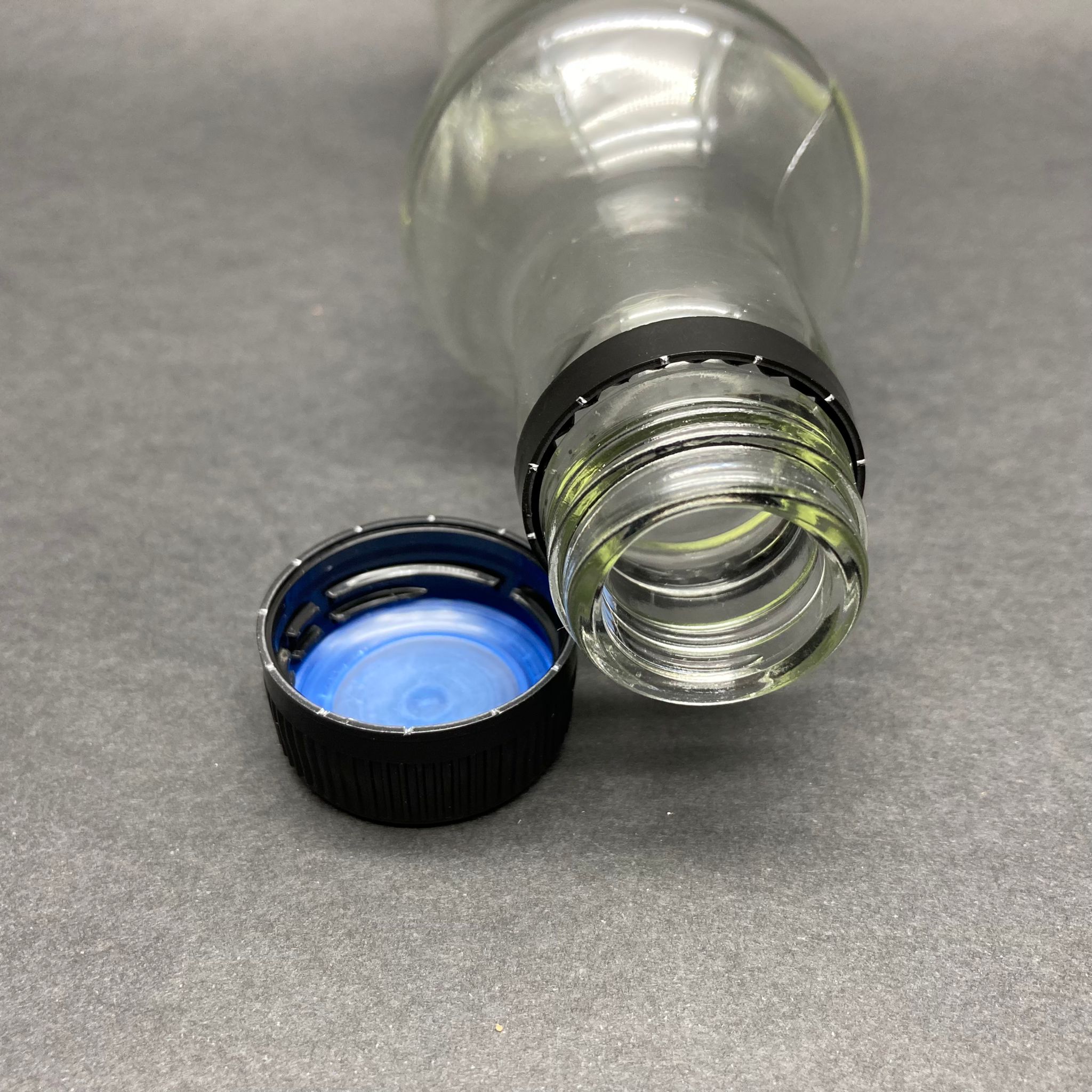 250 Cc İnce Belli Cam Şişe - Siyah Kilitli Plastik Kapaklı - 250 Ml Boş Cam Şişe