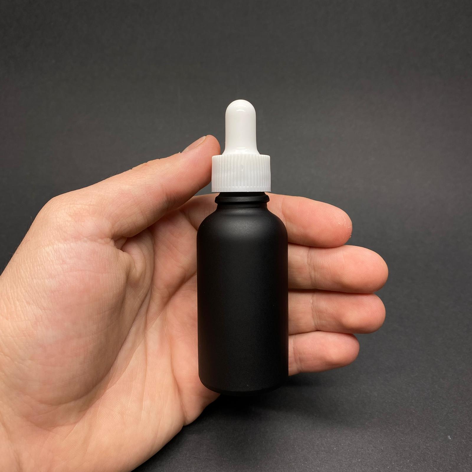30 Cc Mat Siyah Boyalı Cam Damlalıklı Şişe - Beyaz Emzik - Beyaz Kapak - 30 Ml Cam Damlalıklı Şişe