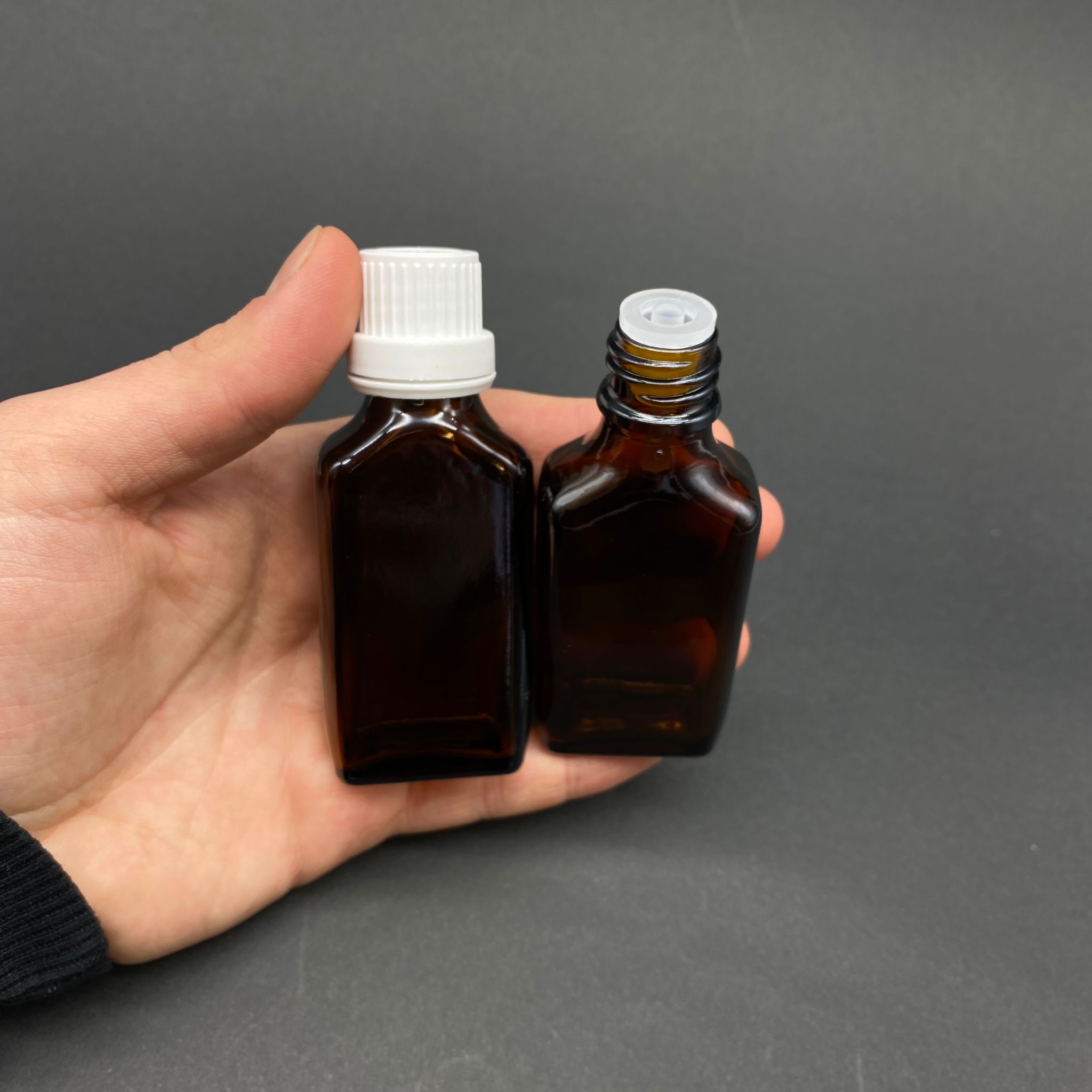 Yassı amber cam rengi, ürüne şıklık katar ve içindeki sıvının rengini korur. Beyaz kilit kapak sayesinde içeriklerinizi uzun süre taze tutabilirsiniz. Damlalık özelliği ise kullanımı kolaylaştırır ve istediğiniz miktarda sıvıyı dozlayabilirsiniz.