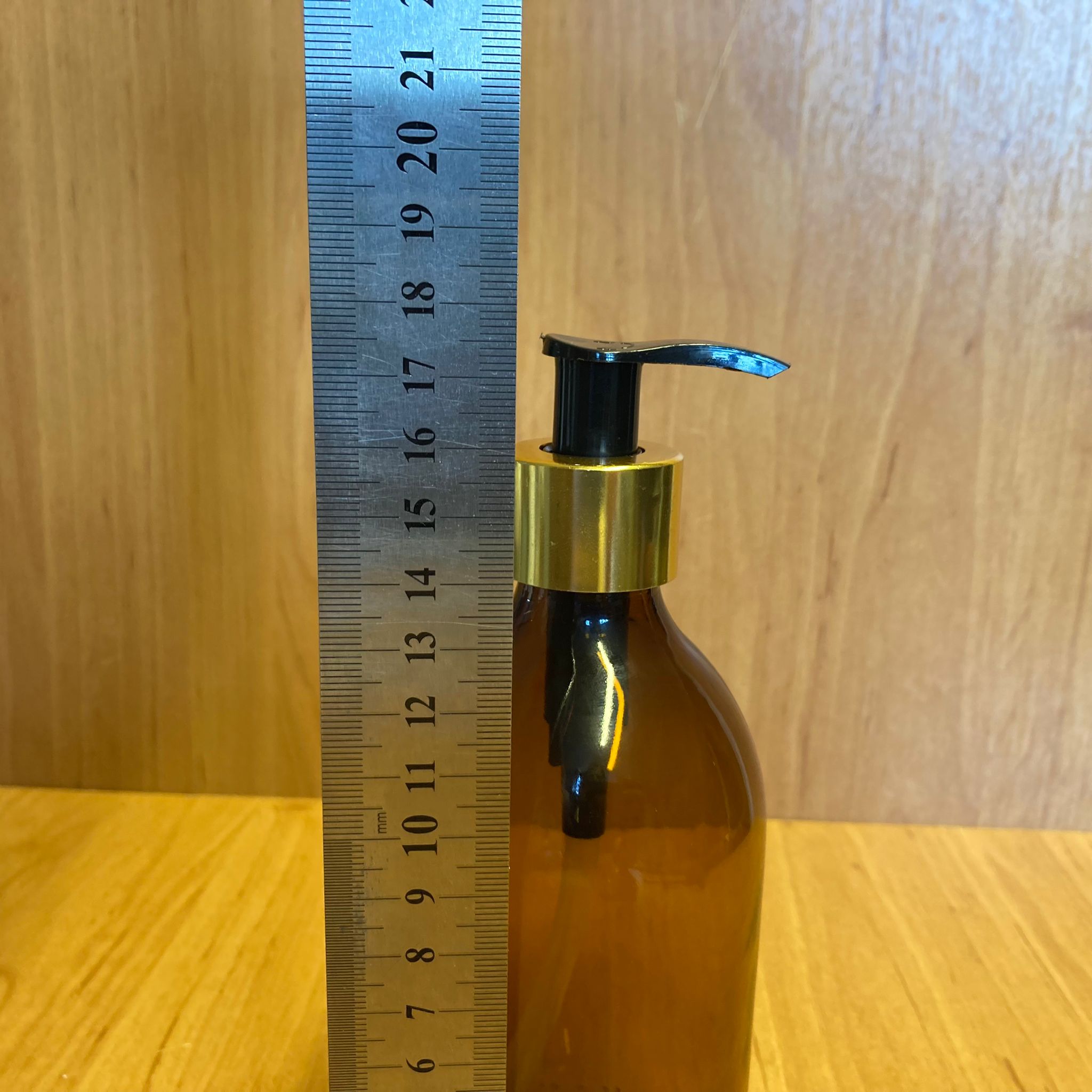 300 Cc Amber Cam Şişe - Gold Pompalı - 300 Ml Kahverengi Pompalı Şişe ile stilinizi tamamlayın! Bu şık ve kullanışlı cam şişe, 300 ml kapasitesiyle favori losyonunuzu veya parfümünüzü taşımak için idealdir.