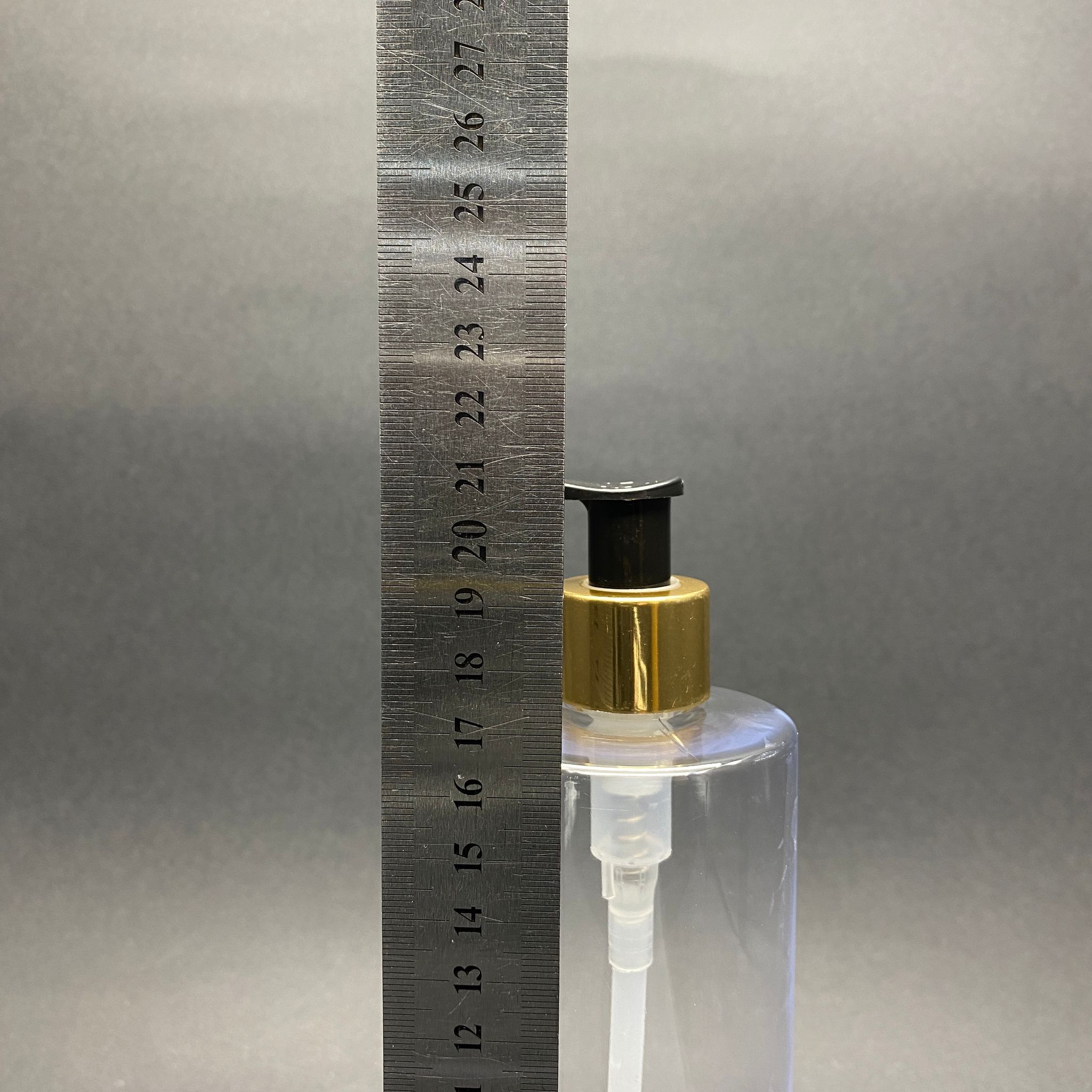 400 Cc Küt Boyunlu Silindir Pet Şişe (30 Gr) - Gold Sıvı Sabun Pompalı ile banyo ve mutfaklarınızı şıklıkla donatın. Bu 400 ml plastik şişe, şeffaf tasarımıyla içindeki sıvının seviyesini kolayca görebilmenizi sağlar. Gold rengi detaylarıyla dikkat çeken bu pet şişe, sıvı sabun pompasıyla kullanımı pratikleştirir.