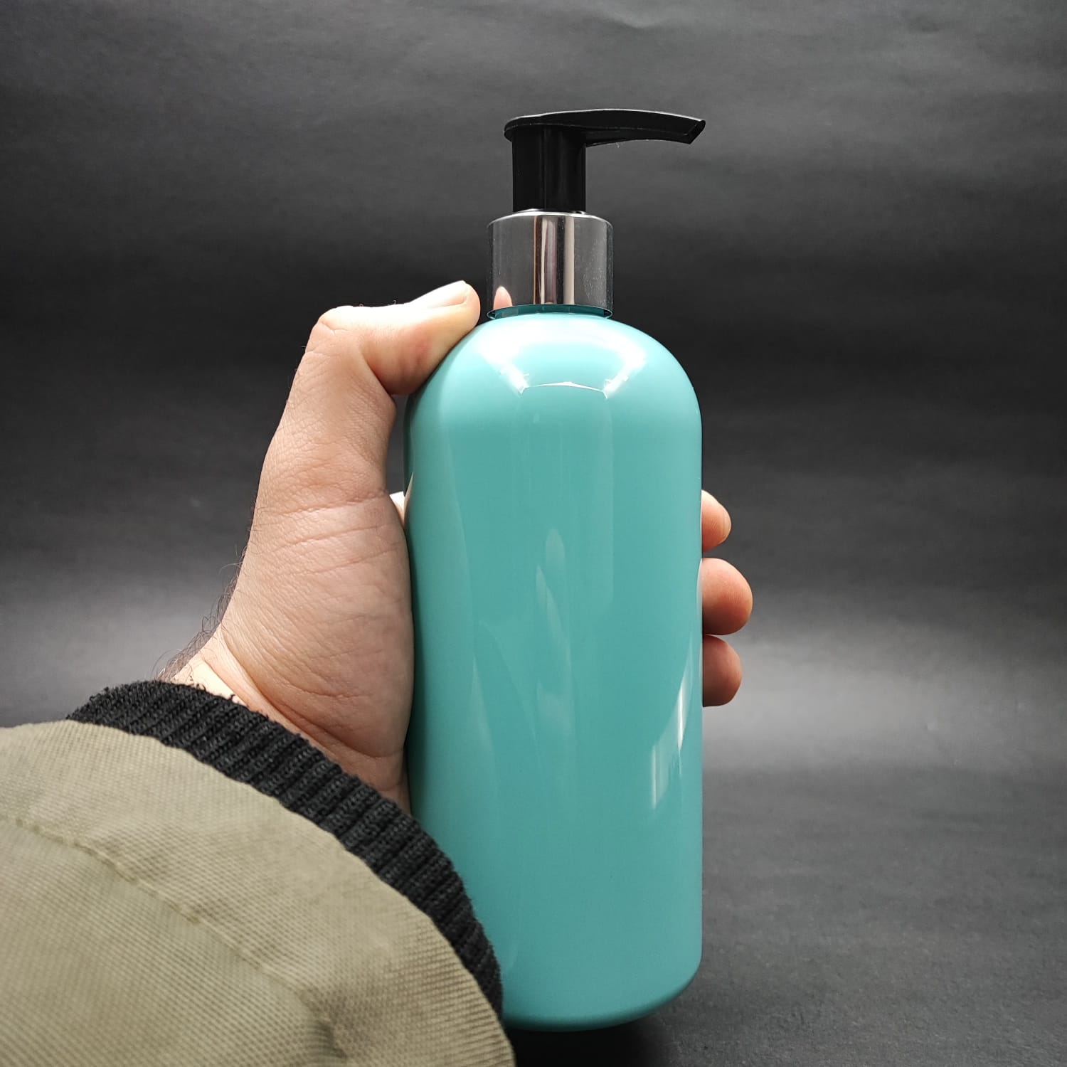 400 Cc Oval Boyunlu Silindir Pet Şişe (30 Gr) - Gümüş Pompalı - 400 Ml Plastik Şişe - Turkuaz