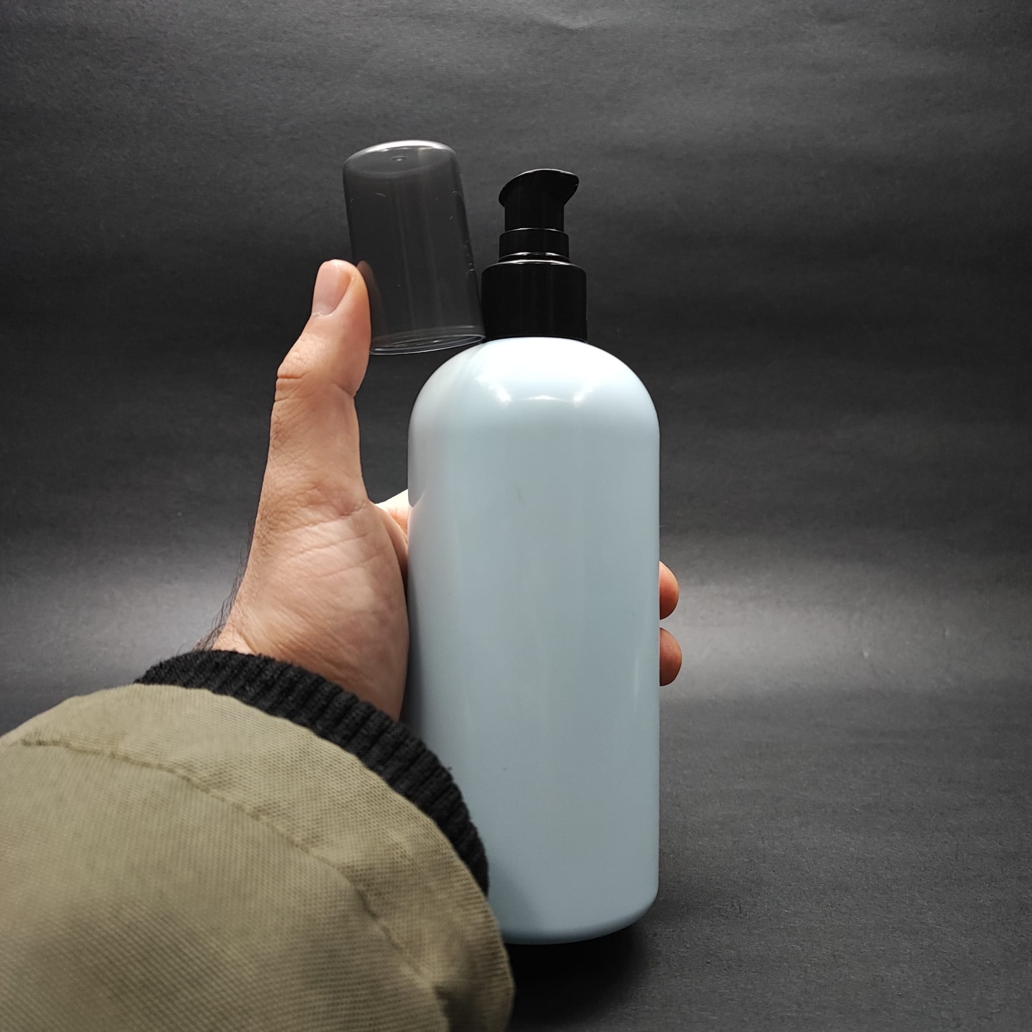 Bu 400 ml plastik şişe, siyah losyon pompasıyla birlikte, kullanıcılarına pratik ve şık bir çözüm sunar. Bebek mavisi rengiyle dikkat çeken bu ovalli boyunlu silindir pet şişe, 30 gramlık hacmiyle ideal bir seçenektir.