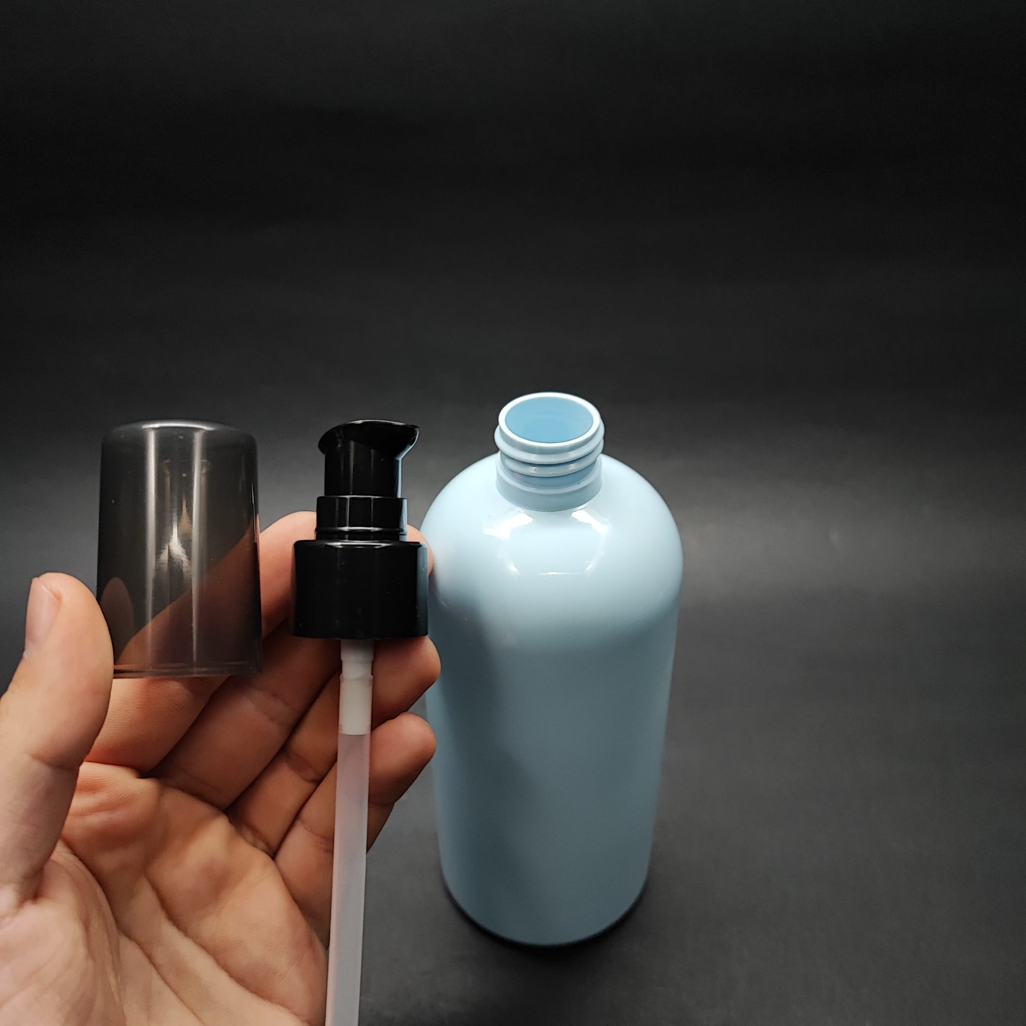 400 Cc Oval Boyunlu Silindir Pet Şişe (30 Gr) - Siyah Losyon Pompalı - 400 Ml Plastik Şişe - Bebek Mavisi