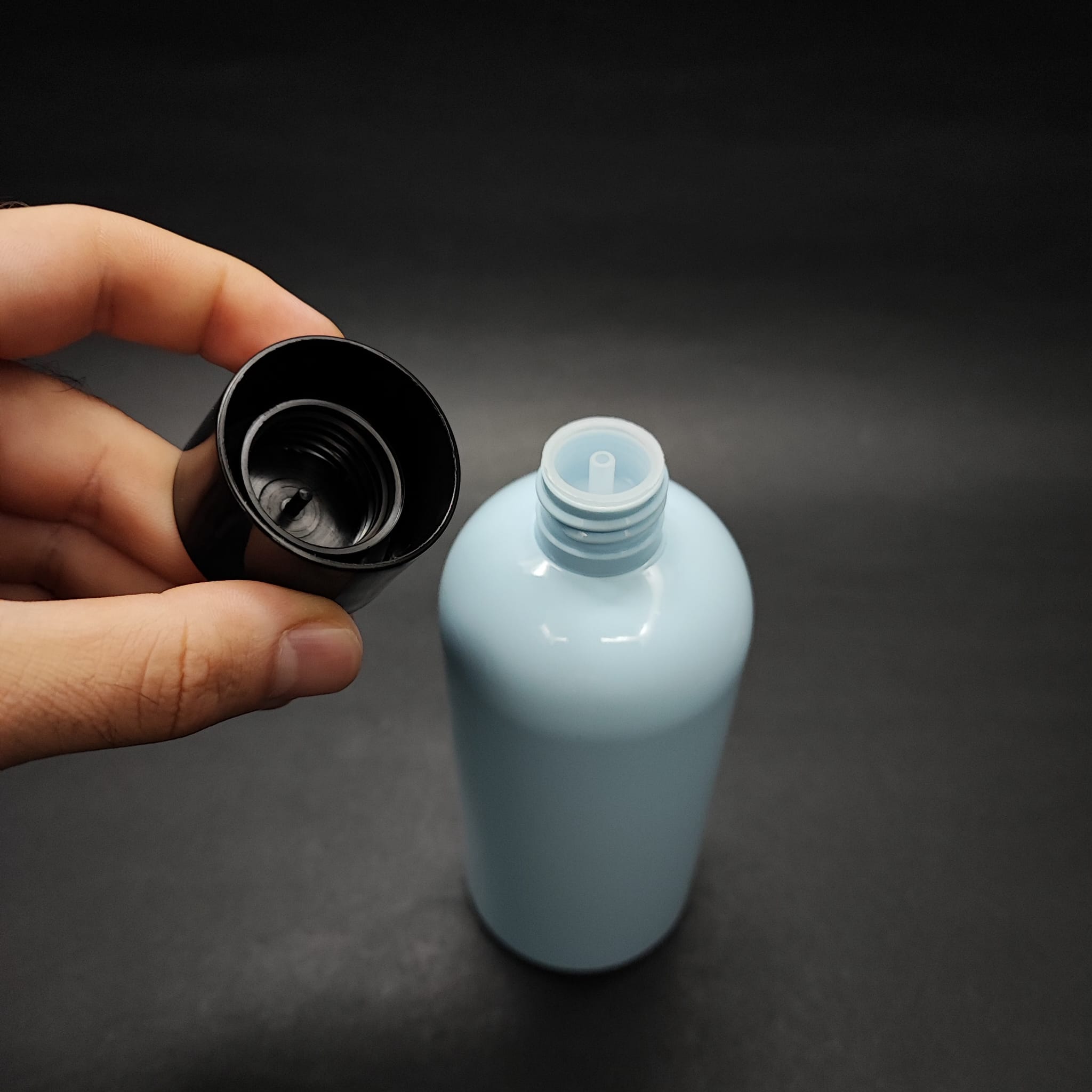 400 Cc Oval Boyunlu Uzun Silindir Pet Şişe (30 Gr) - Siyah Kolonya Losyon Kapak + Tıpa - 400 Ml Plastik Şişe - Bebek Mavisi