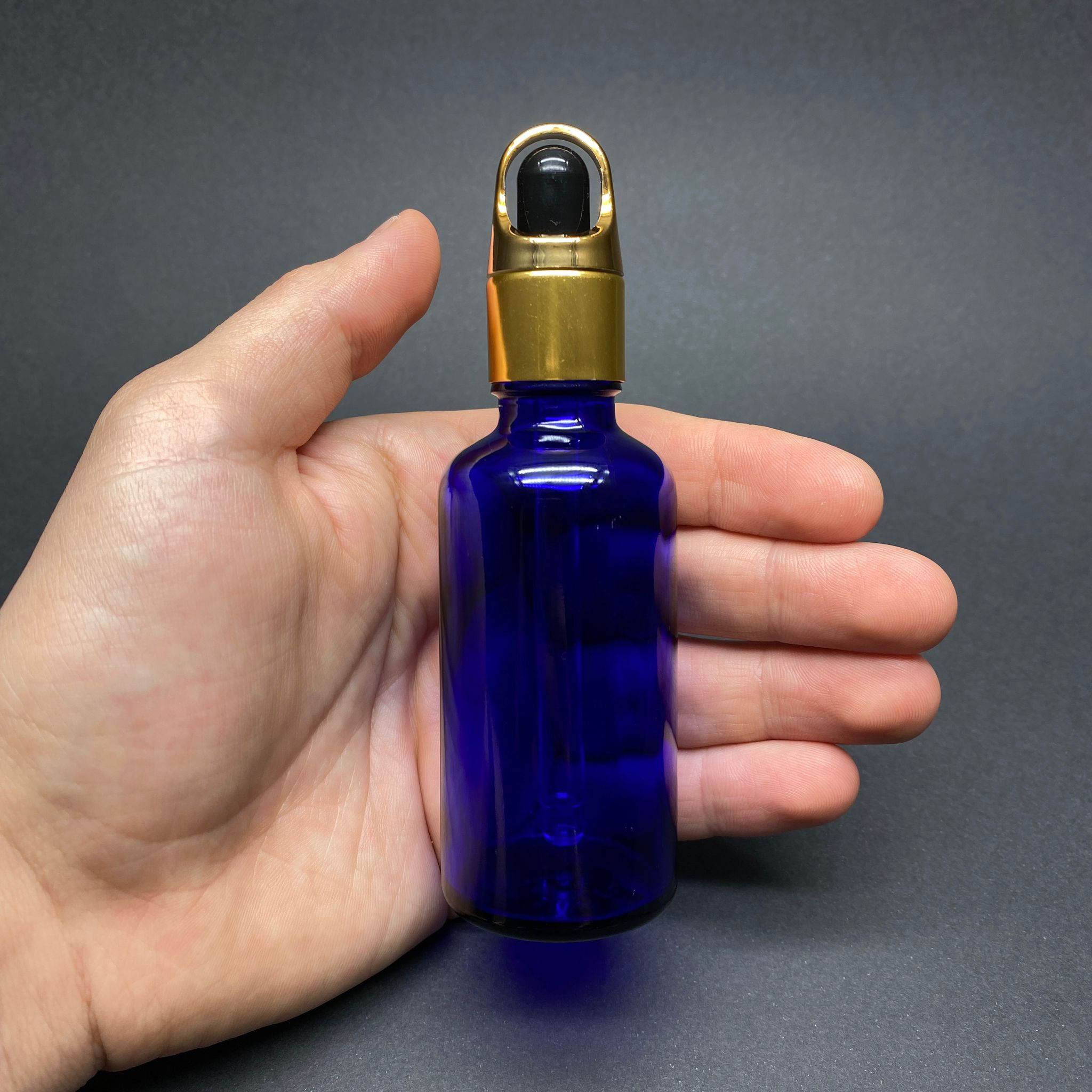50 Cc Mavi Cam Damlalıklı Şişe - Siyah Emzik - Gold Flower Sepet Model Metalik Kapak - 50 Ml Cam Damlalıklı Şişe