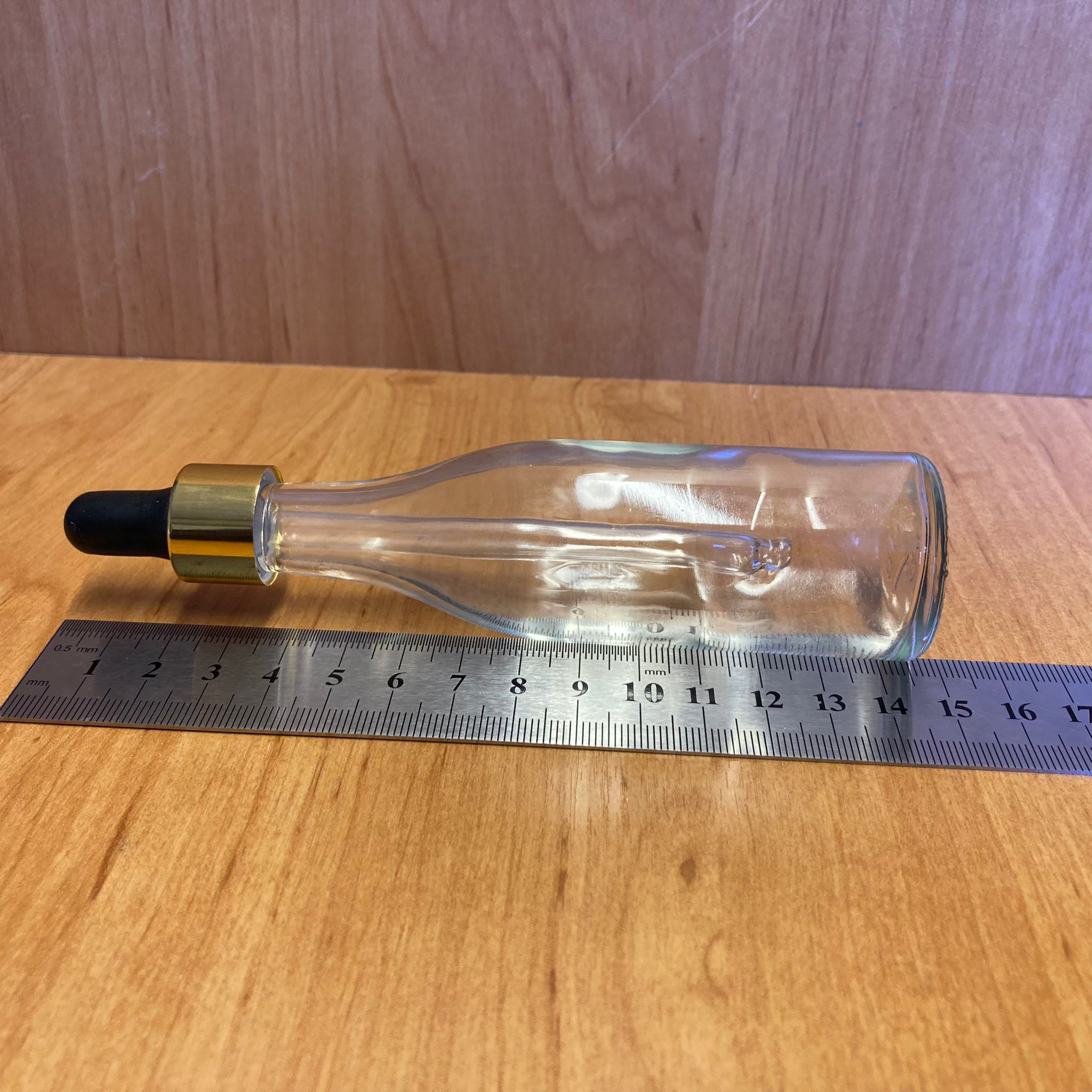 50 Cc Uzun Model Cam Damlalıklı Şişe - Siyah Emzik - Gold Metalik Kapak - 50 Ml Cam Damlalıklı Şişe