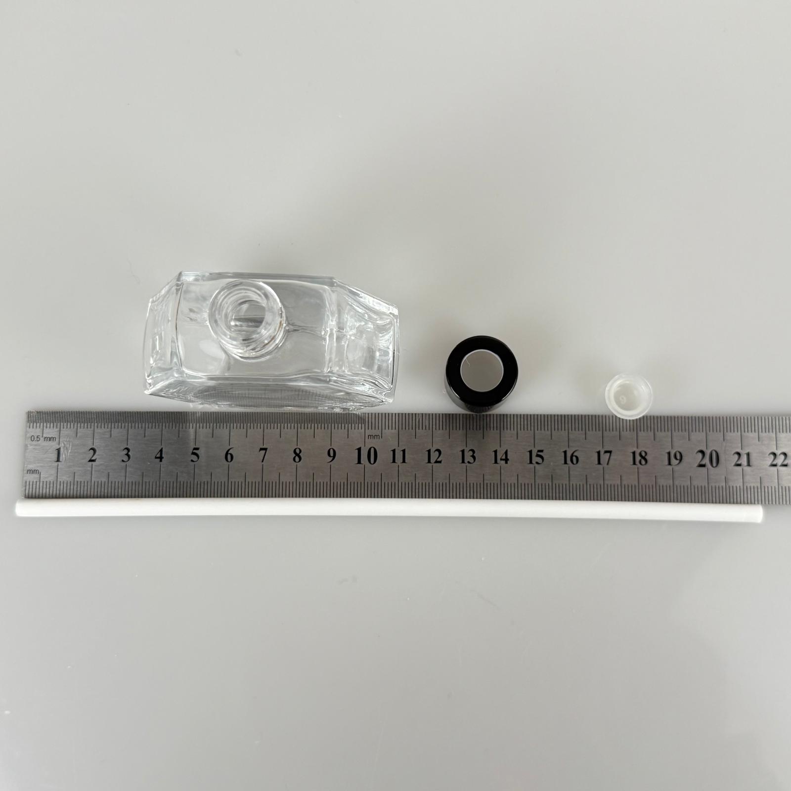 Altıgen Model Cam Bambu Oda Kokusu Şişesi + Metal Siyah Kapak + Tıpa + Kalın Beyaz Fiber Bambu Çubuk - 50 Ml Set Takım - Hediyelik Promosyon Diffuser Şişeleri
