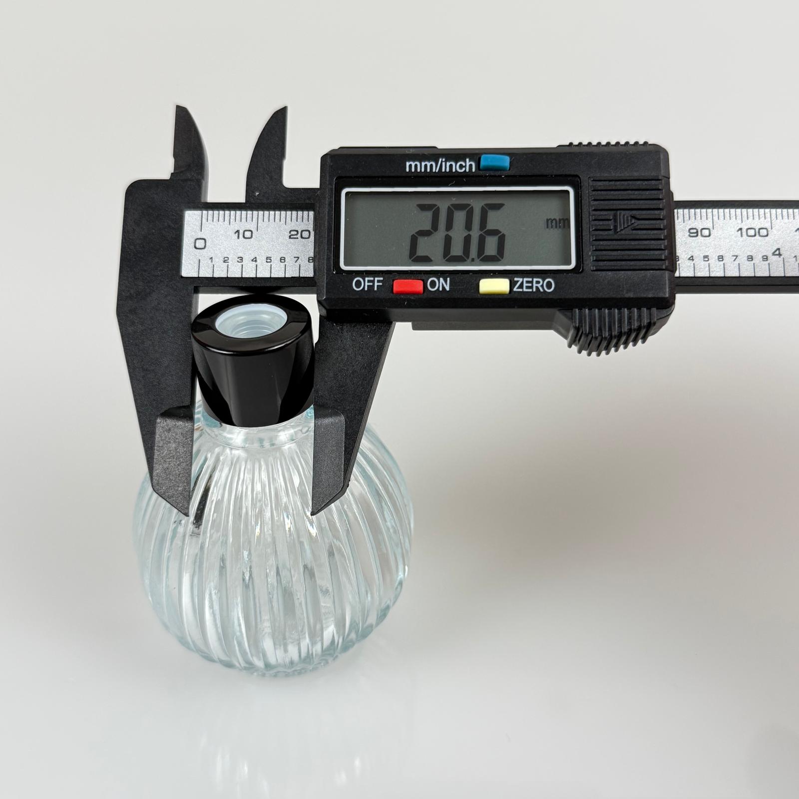 Çizgili Top Model Cam Bambu Oda Kokusu Şişesi + Metal Siyah Kapak + Tıpa + 3 Adet Fiber Bambu Çubuk - 50 Ml Set Takım - Hediyelik Promosyon Diffuser Şişeleri