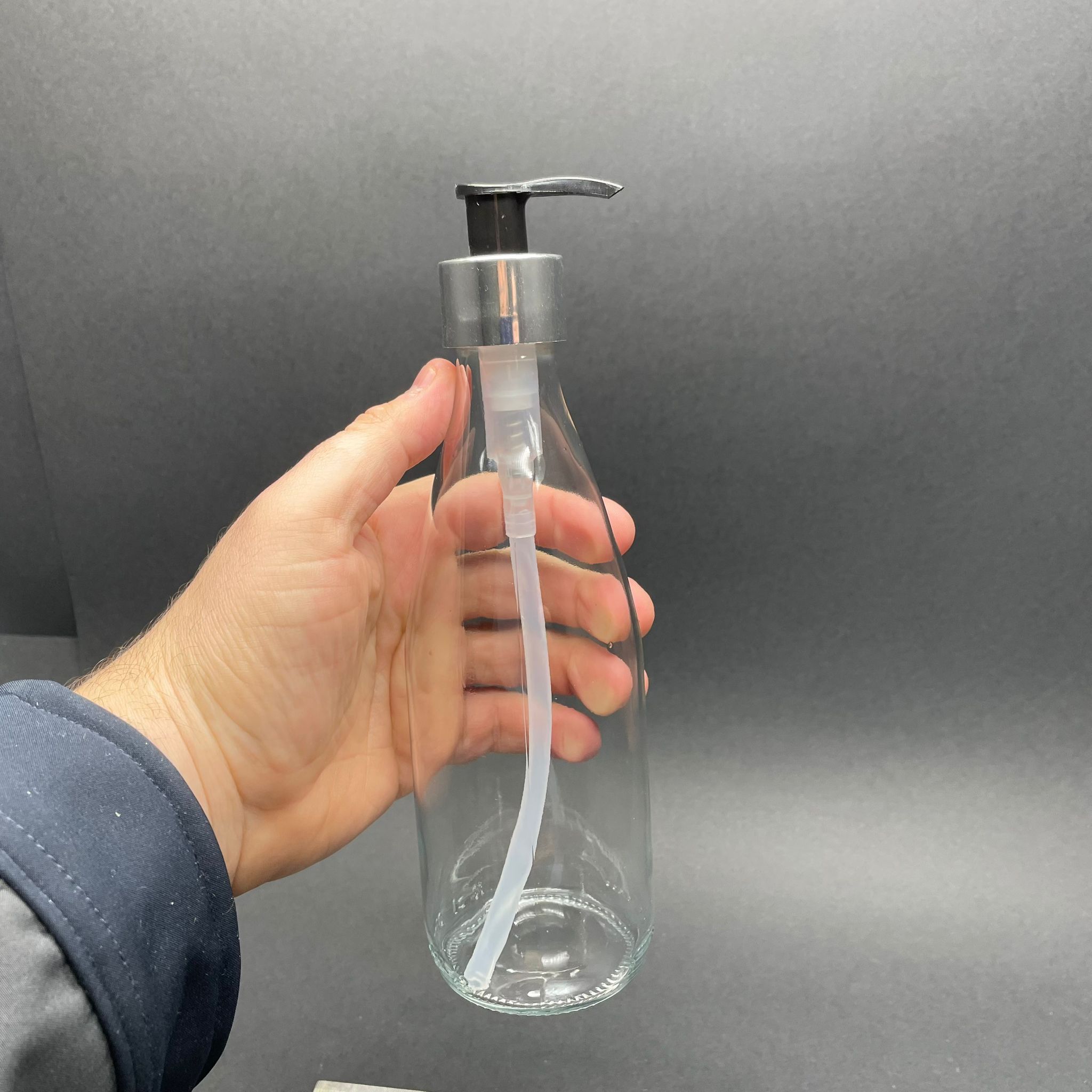 Gümüş Pompalı Cam Şişe - Cam Sıvı Sabun Şişesi - Cam Şampuan, Losyon Şişesi ile evinizdeki günlük bakım rutininizi daha keyifli hale getirin!