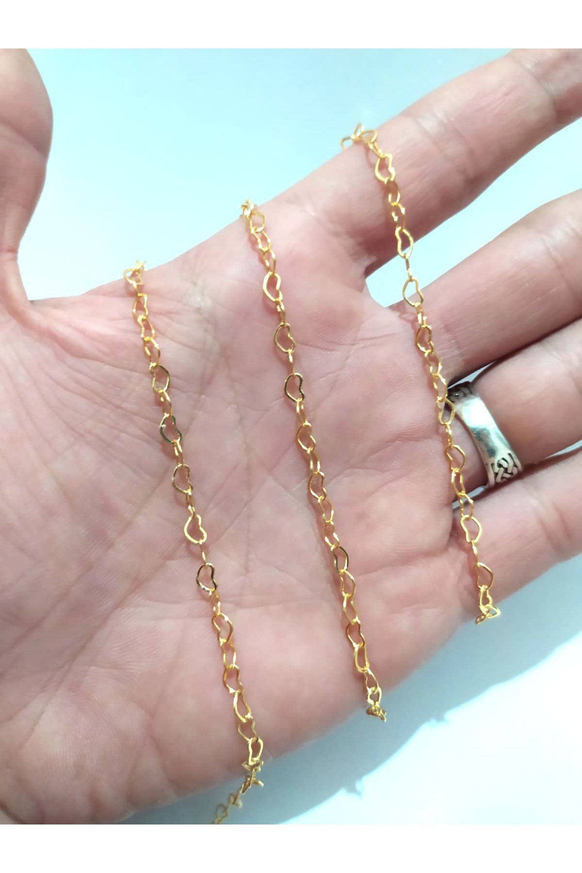 Takı Yapımı için 10 Metre 3mm Altın Kaplama Kalp Zincir
