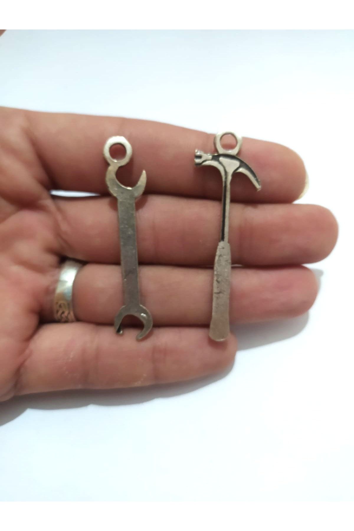 inSade Concept - Takı Yapımı için 2 Adet Çekiç Anahtar Otantik Gümüş Kaplama Kolye Bileklik Küpe Halhal Ucu