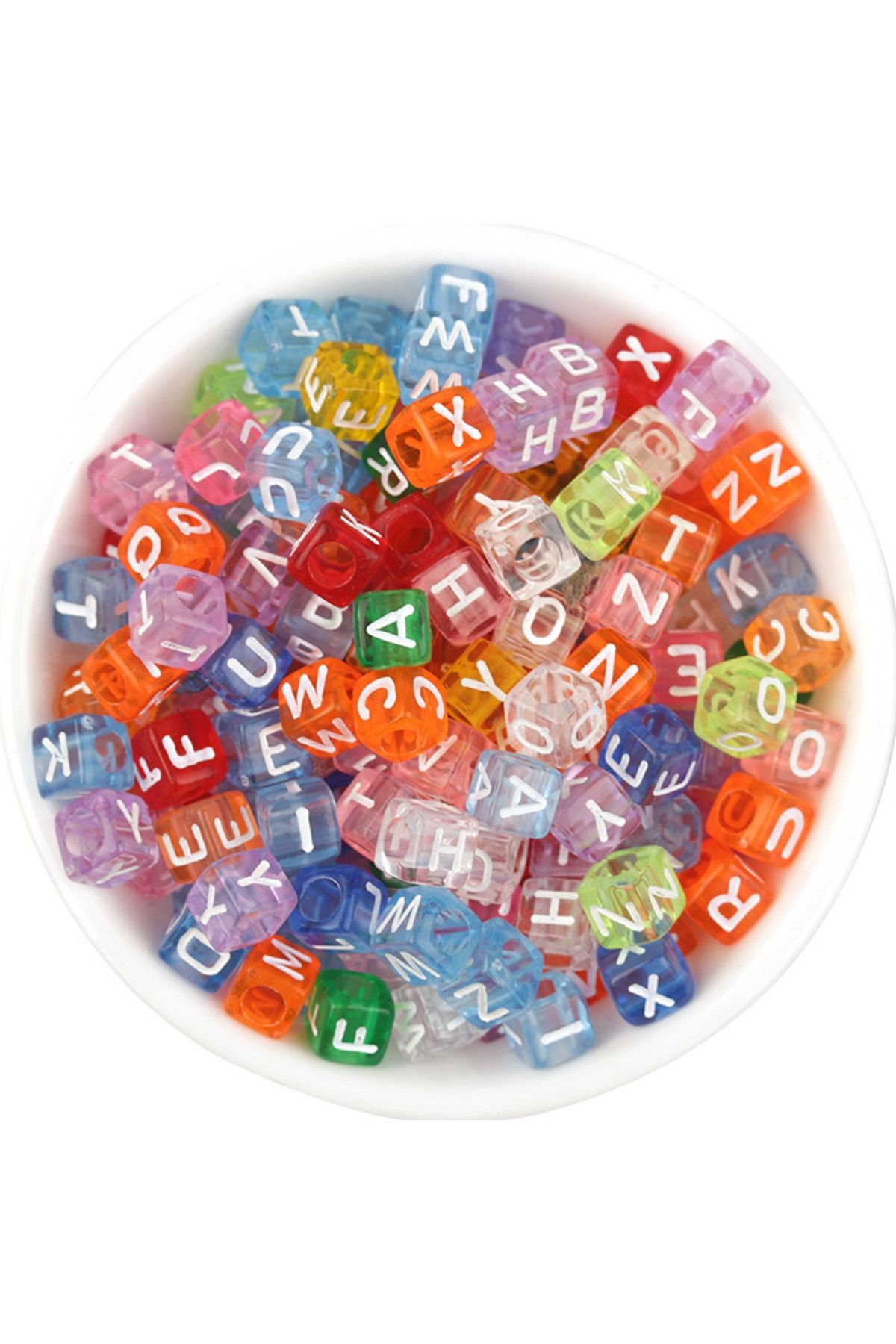 takı yapımı için çok renkli küp şeklinde yarı şeffaf harf boncuk ; stok durumuna göre karışık şekilde 100 adet gönderilir. ; mağazamızdaki diğer boncuklarla kombinleyerek yada tek başına kullanabilirsiniz. ;