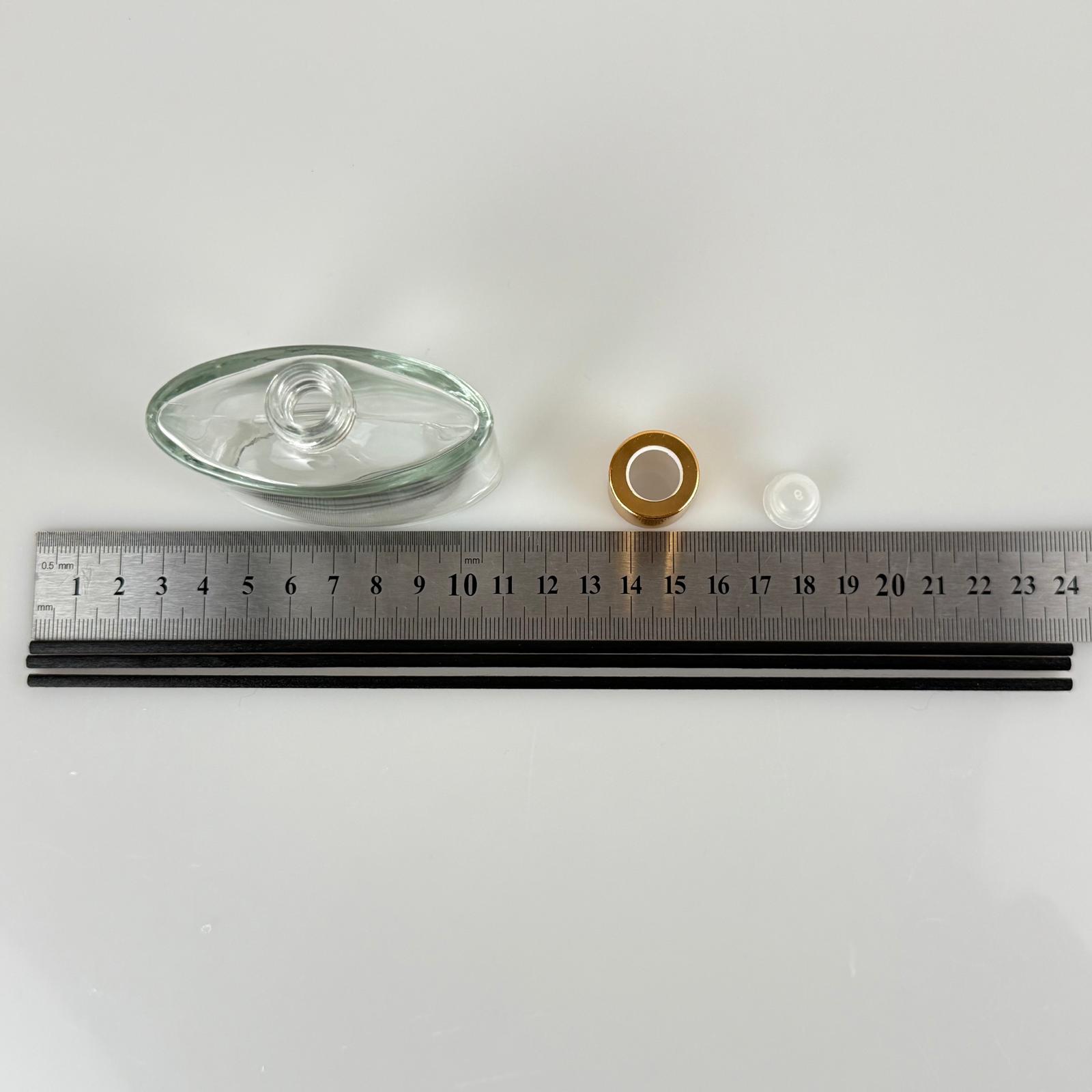 Yassı Model Cam Bambu Oda Kokusu Şişesi + Metal Gold Kapak + Tıpa + 3 Adet Fiber Bambu Çubuk - 50 Ml Set Takım - Hediyelik Promosyon Diffuser Şişeleri